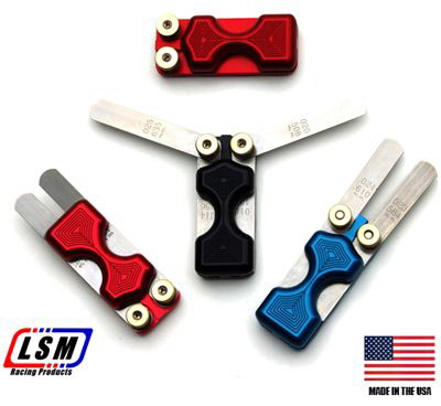 Holds two sets of feeler gauges on the same handle. Perfect for intake and exhaust or go no-go gauges. Will accept various styles of 1/2" wide feeler gauges depending on your application. (gauges not included)